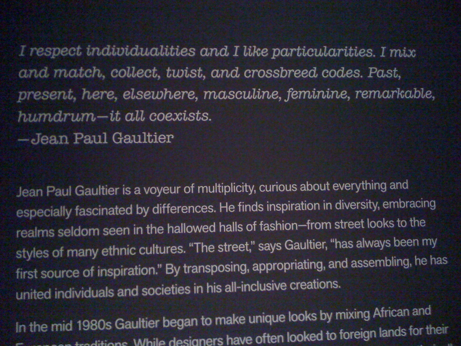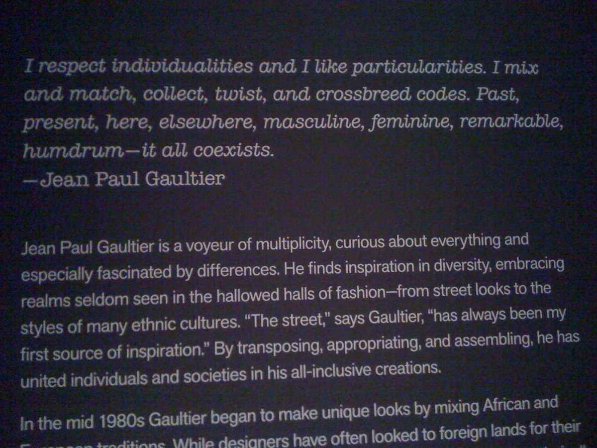 IMG_0380 Published September 1, 2012 at 1600 × 1200 in Jean Paul Gaultier, deYoung Museum, SF ← Previous Next →